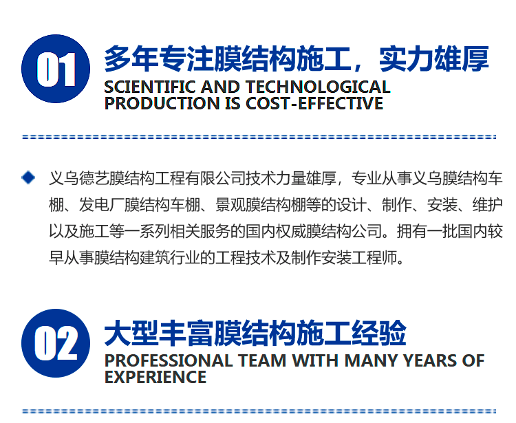 为客户提供膜结构工程设计、施工、维护等一站式解决方案